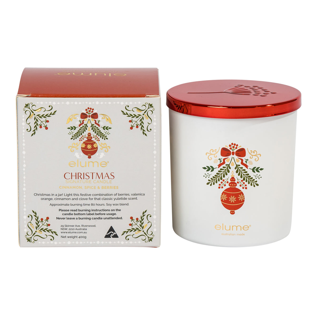 Experience the charm and sophistication of our Christmas Signature Cinnamon Spice and Berries soy candle, offering over 80 hours of burn time. Bring beauty and elegance to your home with this premium soy candle, ensuring enduring fragrance that enhances any setting. Whether used as a stunning table centerpiece or given as a cherished gift, it promises to create lasting memories this Christmas. Elegantly displayed in a stunning glass jar with a contemporary lid and a festive box.