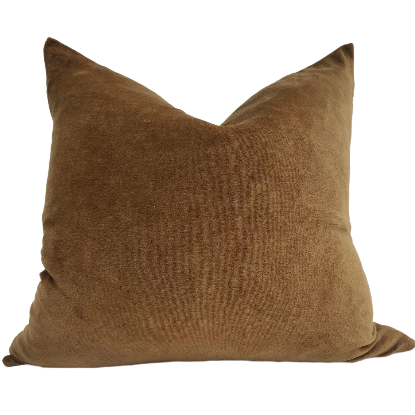 Fontainebleau Cotton Velvet & French Linen Cushion 55cm - Toffee
