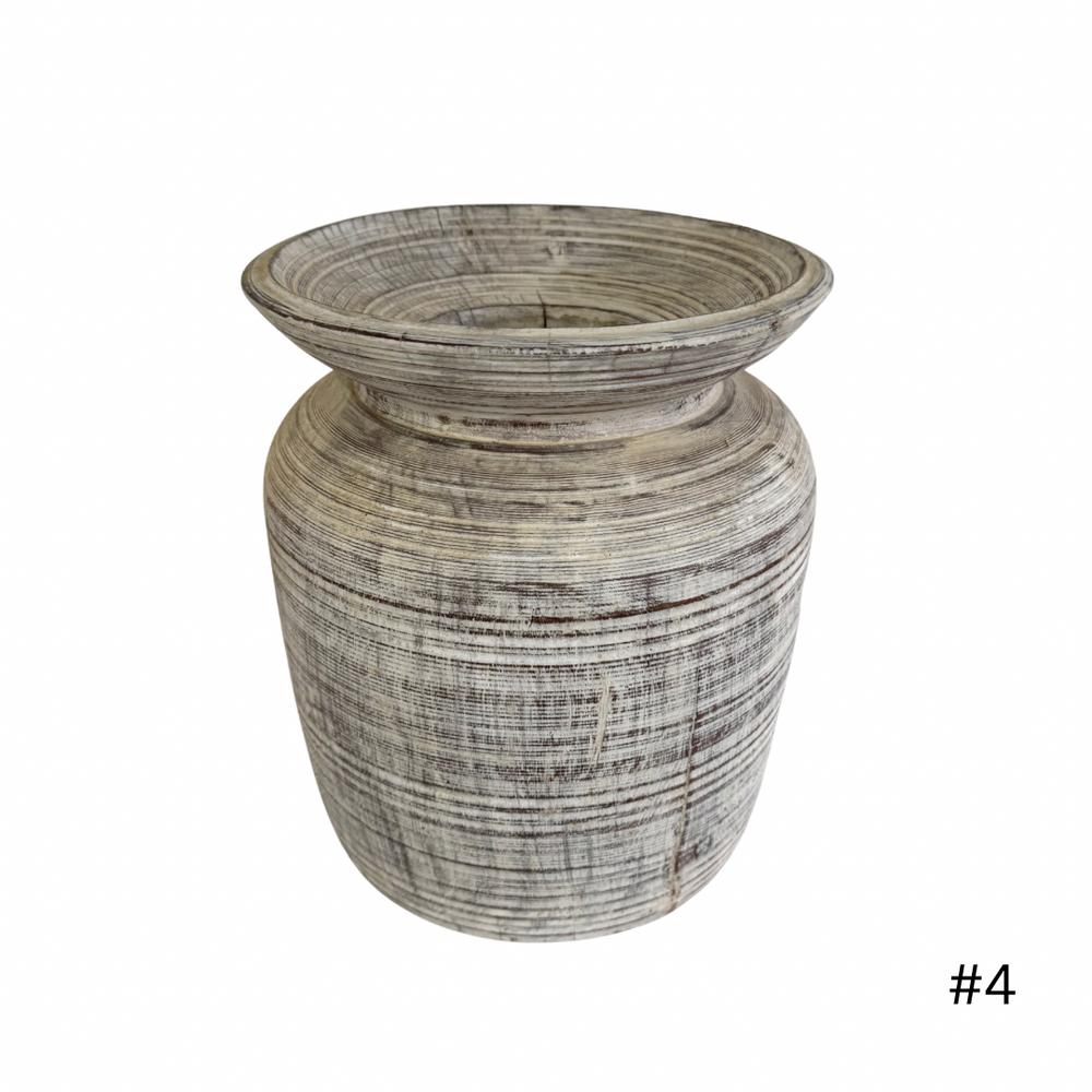 Vintage Indian Wooden Pot - Whitewash