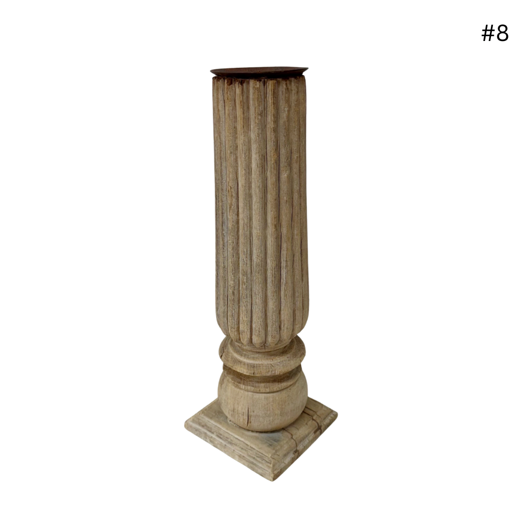 Once ornate details from Indian furniture, these candle stands have been beautifully repurposed into unique pieces for your home. Each one carries its own rustic timber patina, telling a story of time and craftsmanship.