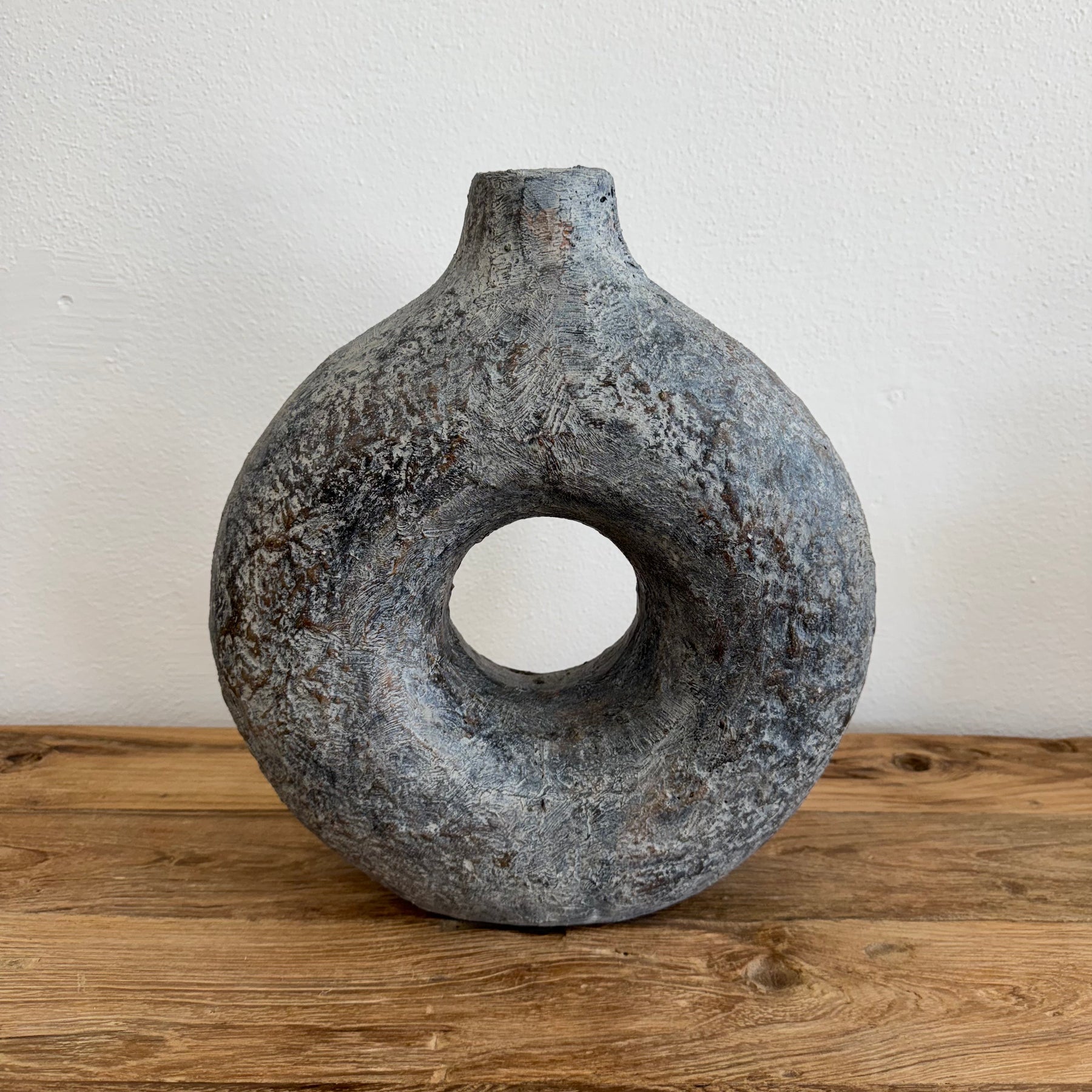 The Raka Vase is a sculptural accent designed to add texture and visual interest with understated elegance. Its rounded silhouette and open centre create a soft, organic shape, while the stone like finish brings warmth and depth to any setting.
